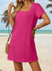 💕Short sleeve mini dress with pockets, square neck, mini length, loose fit style easy to dress up and down